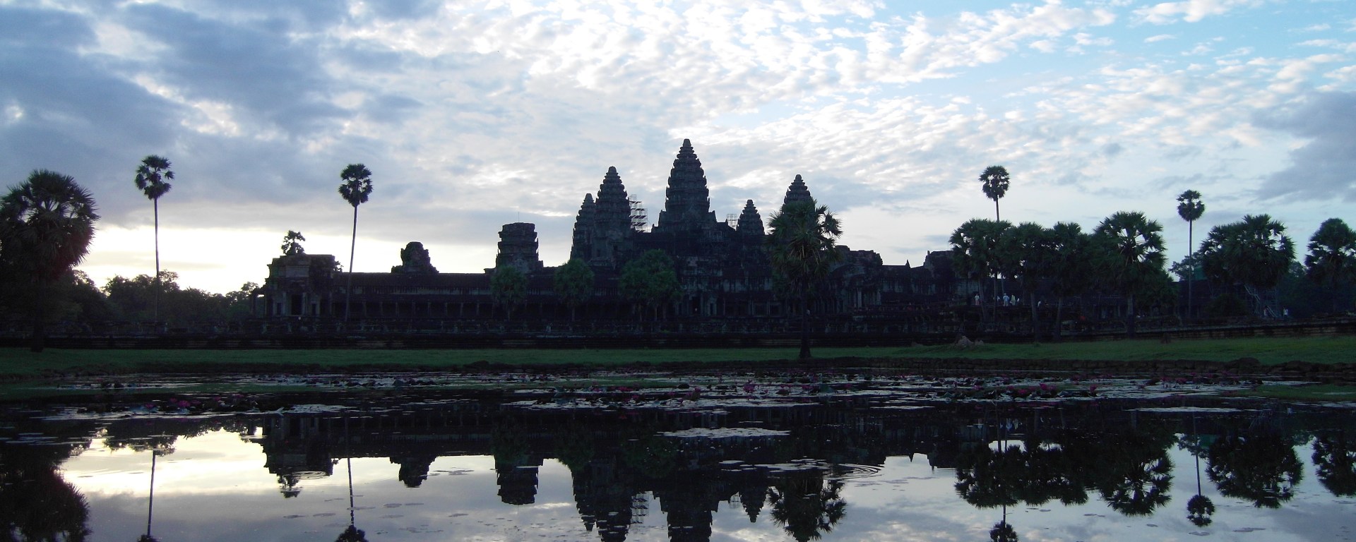 More similarities with India assaulted us as we approached Angkor Wat, which is not so unlike the Taj Mahal in scale and impressiveness; were in not in ruins, it would certainly be as popular. Surrounding the entrance were dozens of people, especially children, trying to sell souvenirs and such, something that we had not seen much of on this trip. Despite the oppressive heat and humidity, we spent nearly two hours wandering around Angkor Wat and marveling at the scale of the former temple (built as a Hindu temple and later converted to Buddhist). The grounds were lovely as well and were massive enough that for most of our time there, we felt completely alone in this wondrous place – often we looked around to find no humans, but sometimes a monkey or a stray dog. The carvings throughout the buildings were beautiful and it must have been unbelievable before it was destroyed. We also visited Angkor Wat again the next morning at sunrise, which was beautiful lighting to see it by and certainly less hot, but it was surprisingly packed with tourists at 5:30 in the morning!![]()