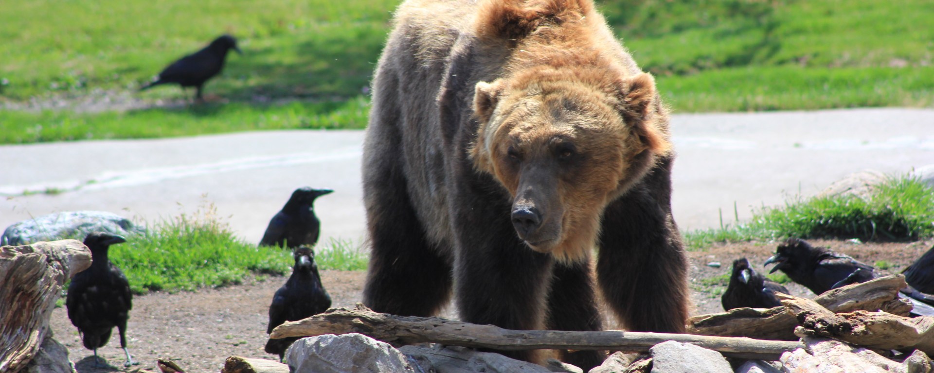 Predictably, we just couldn’t get it together the next morning (I have many theories as to why and will go into them more at a later date, but we are consistently an hour to an hour and a half behind our planned schedule and it’s making me crazy). We had wanted to leave early to get to Yellowstone and see the main sites, but we didn’t get out of camp until nearly 11 (so yeah, more like 3 hours behind this time)! As we got to town, traffic was totally jammed up with tourists trying to get into the park! We detoured quickly and decided to go to the Grizzly and Wolf Discovery Center, which a couple of travelers had mentioned. I was afraid it would be touristy and cheesy, but it was actually wonderful and incredibly informative. They have 8 Grizzly bears and about 10 wolves, in addition to the museum, and they offer educational tours. The wolves were taking a siesta from the heat so we didn’t get great photos of them as they were just lying around, but we saw a couple of bears (brother and sister) foraging for food – they were so close! I’m always surprised that an animal so feared in the wild can appear so unintimidating when an enclosure separates them from me.