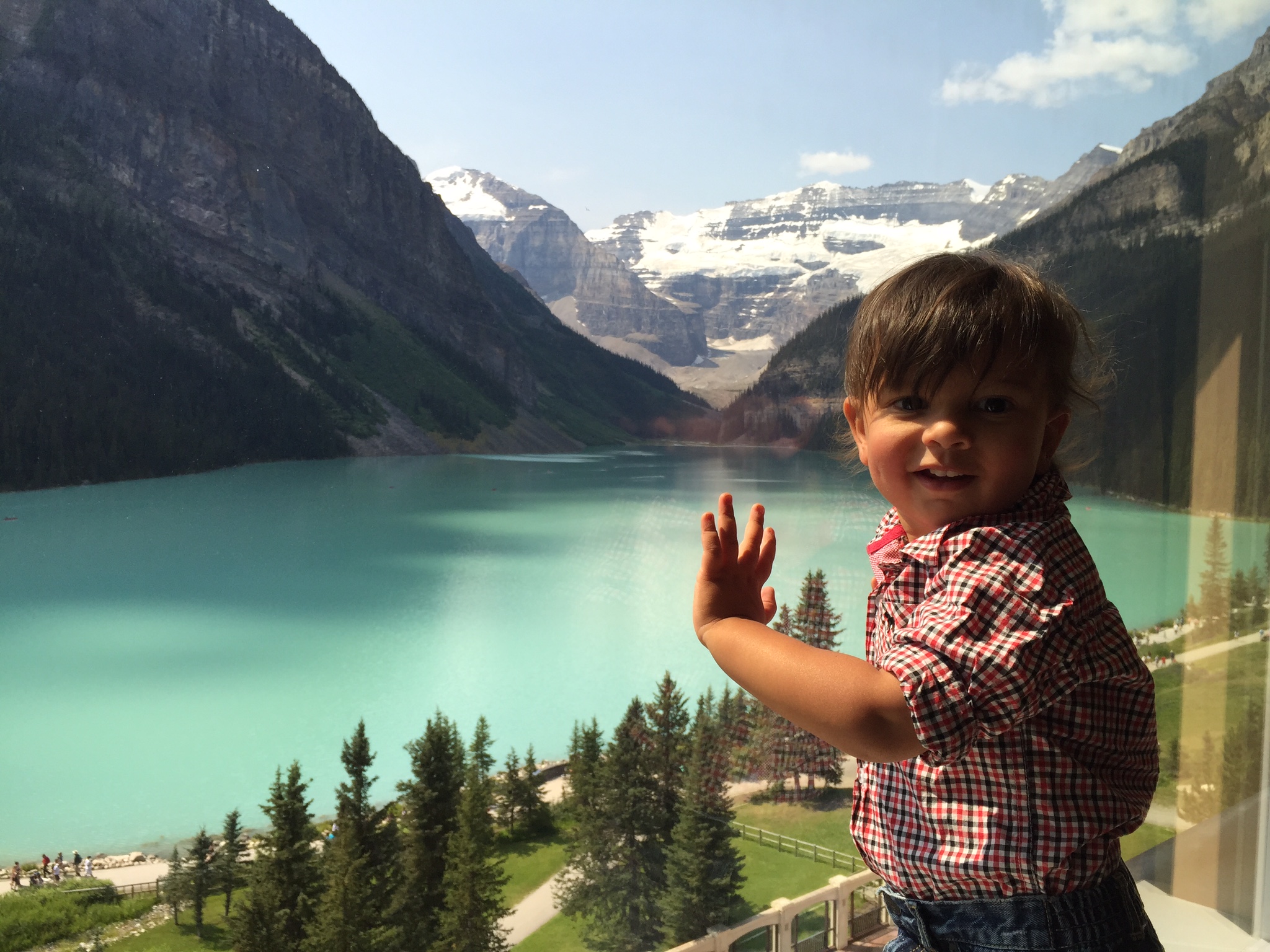 For whatever reason, everyone was grumpy the day we left Kinbasket and drove back east to Lake Louise. We had hoped to all drive to the Columbia Icefields, but it was just too hard that day. We found Lake Louise to be a nightmare with the traffic and crowds! Though we expected the usual peak season traffic, we had a few other things working against us… 1) none of us particularly like crowds and touristy things, 2) we were there during a major Canadian holiday, and 3) Canada’s economy has been suffering and their dollar is weak against the US’s so there was way more domestic travel than usual. Whether it can be explained or not, it was ridiculous to the point of being miserable and after 6 nights in close quarters, with trains and babies waking us all in the night, the mood was… well, you can imagine. OH, and have I mentioned we were also dealing with the second RV problem since my parents arrived? Yeah, the first one started their first day when our grey tank wouldn’t empty. Raj and my dad had to take the whole sucker apart to try and figure out why it was clogged. Then, as we got to Lake Louise, we had an issue with the fresh water tank siphoning out water. Since our campsite didn’t have water, by the time we would fill it at the station and drive to the site, it was only 1/3 or so full. Somebody tell me why water issues follow my parents! Not that I’m blaming them; they were actually very helpful and troopers about the whole thing, but a lack of water was a potential big problem because the plan while camping at Lake Louise was for Raj and I to go stay at the Fairmont for 2 nights and officially celebrate our anniversary while my parents stayed with the kids in Gypsy (have I mentioned yet that my parents are amazing?).