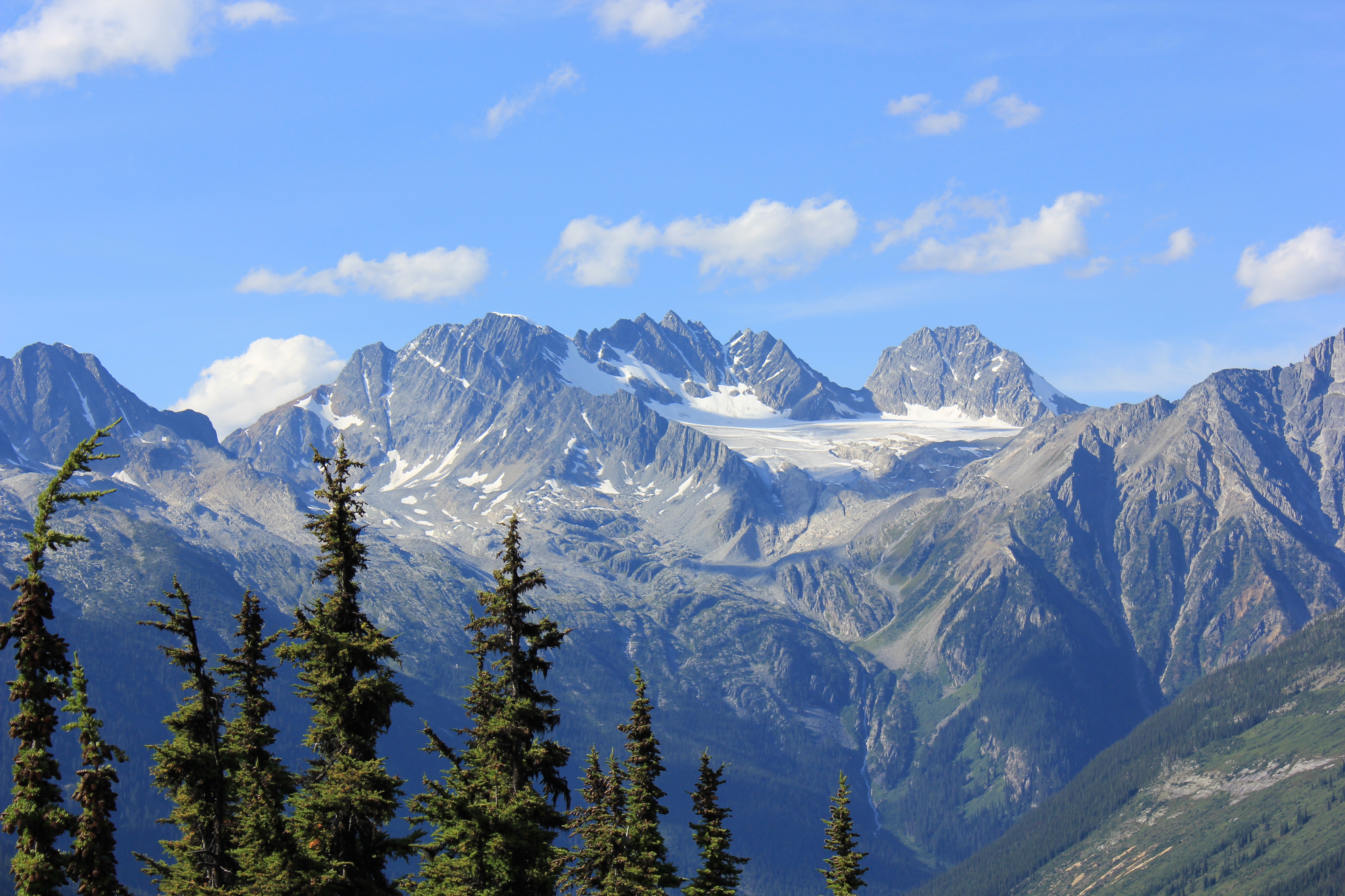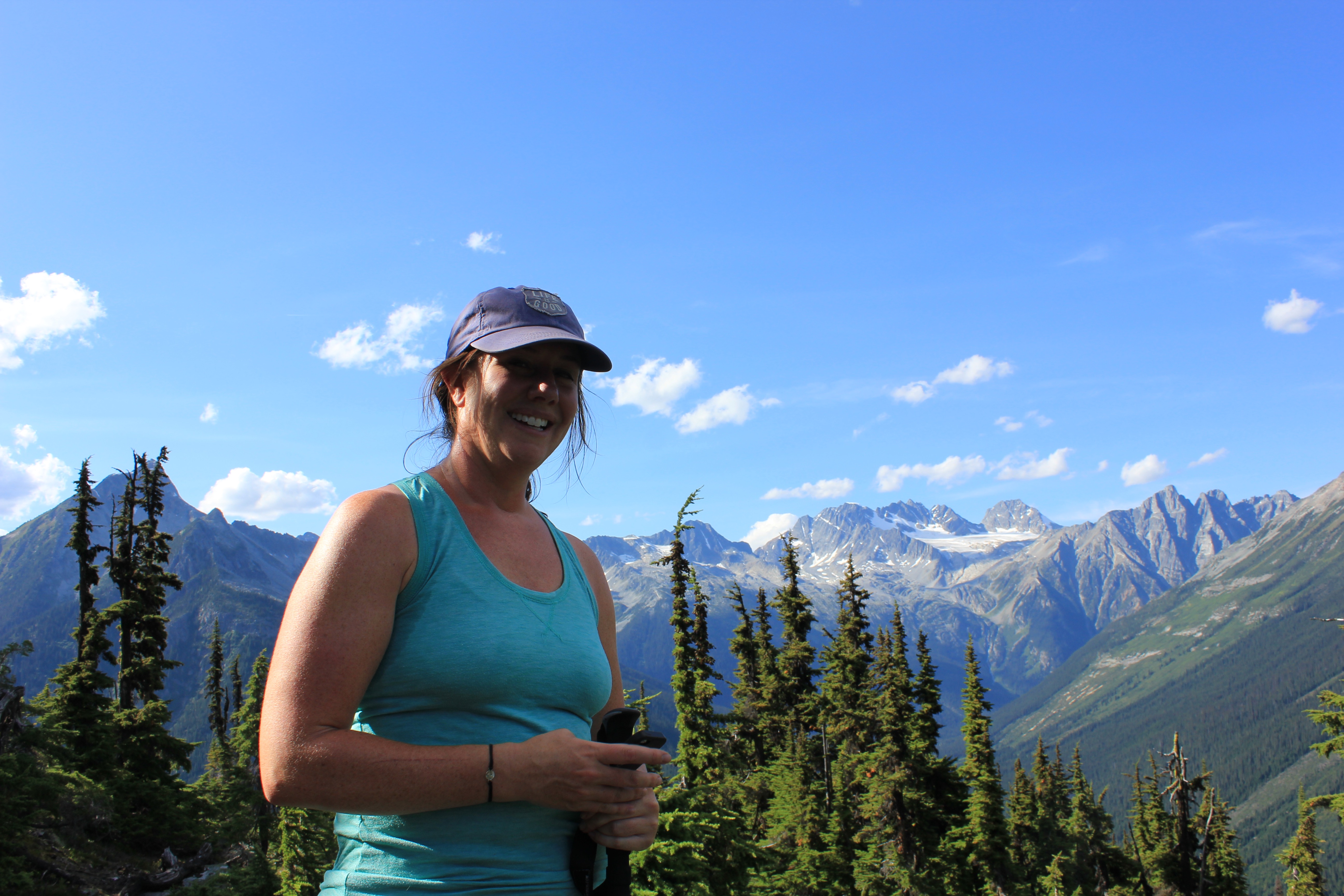 Raj and I celebrated our 10 year anniversary while at Kinbasket, and it was a beautiful and memorable day. We spent the morning with our family by the lake, gobbled an amazing Thai meal I created, and then Raj and I took off in the afternoon to explore Glacier National Park. After a quick trip to the visitor center, we chose to hike to Abbots Ridge, though we were getting a very late start for such an intense hike. The Park has lots of bear activity; so much so that by law you are required to hike with 4 or more persons on most of the trails. Luckily, Abbots Ridge was one of only 4 or so hikes where they didn’t have that requirement that day, but you better believe we had our bear spray and were constantly scanning for them! We chose this hike because it has the most stunning glacial views, and also because it was a more difficult hike that we could ever accomplish with the kids! Even without the kids, it was super tough! We climbed steep switchback through lush forest for the first half, and then it opened up to gorgeous views as we got above the tree-line. We kept on climbing and got to the ranger station in a large open meadow about 200 meters from the ridge.